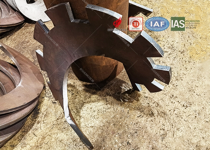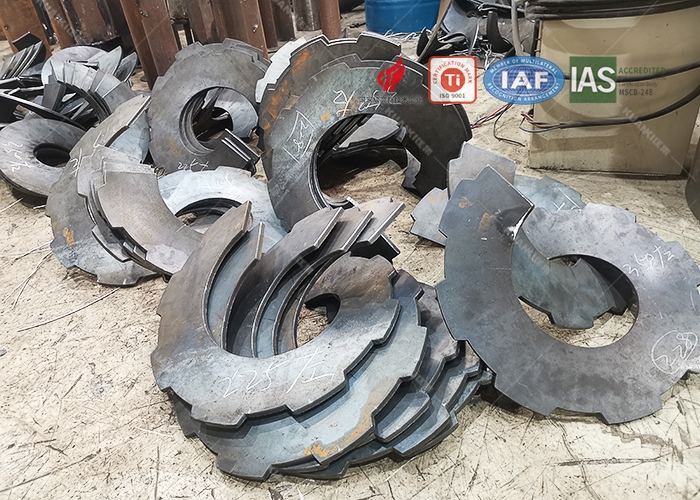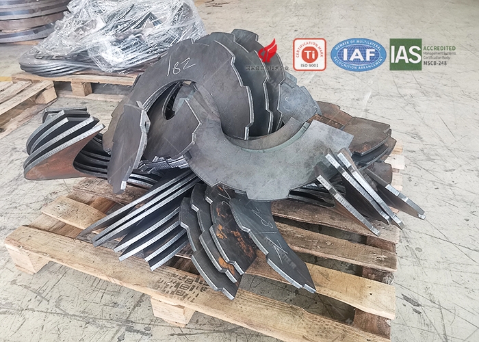 可以根据客户的要求定制加工,根据使用工况的不同,一般会有带齿、带孔等不规则的叶片。